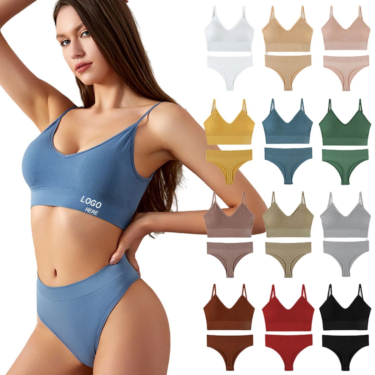 Women's two piece lingerie sets made of ribbed knit fabric, soft and skin friendly, breathable and stretch, lightweight, provide a comfortable wearing experience.It fits great under all types of clothing, such as jean, pant, shorts or skirts, etc. Perfect for intimate moments, romantic evenings, date nights or everyday wear. 1 Lingerie + 1 Panty. Variety of colors and sizes for you to choose. Hand wash, do not dry clean.